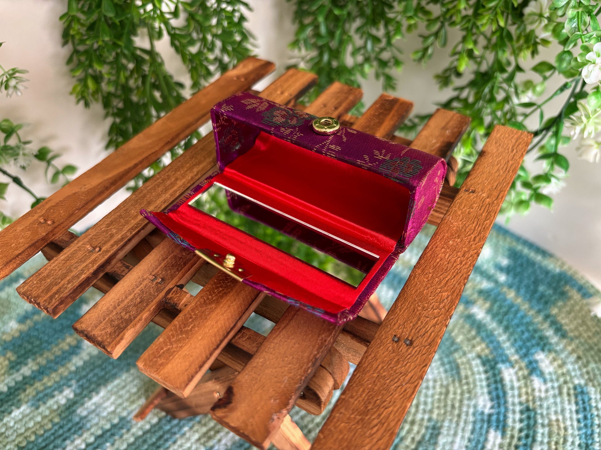 Our fabric lipstick cases are designed to hold up one lipstick and are made with a soft yet sturdy fabric exterior. Each design comes with a small mirror and a button closure. They weigh approximately 1.3 lbs and measure about 8.5 cm (3.5 inches) in length with a 3 cm width.