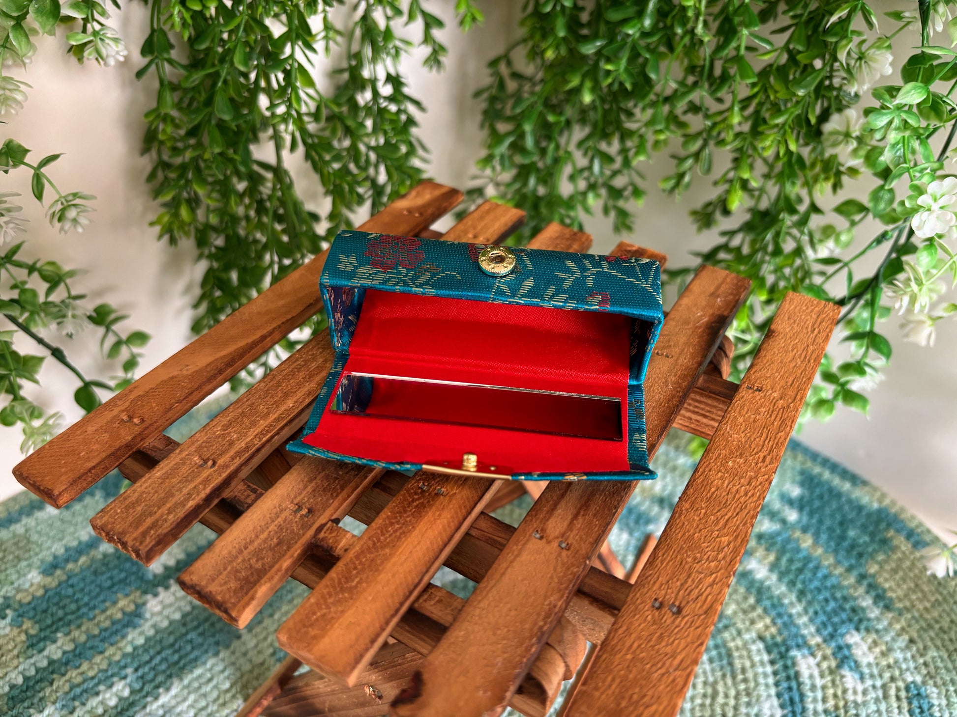 Our fabric lipstick cases are designed to hold up one lipstick and are made with a soft yet sturdy fabric exterior. Each design comes with a small mirror and a button closure. They weigh approximately 1.3 lbs and measure about 8.5 cm (3.5 inches) in length with a 3 cm width.
